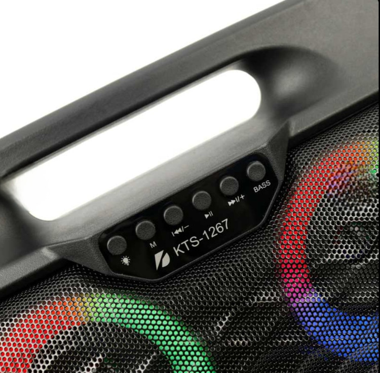 مجهز به دسته برای حمل و دارای کلیدهای فیزیکی جهت روشن و خاموش کردن، مدیریت موسیقی، نورپردازی و …