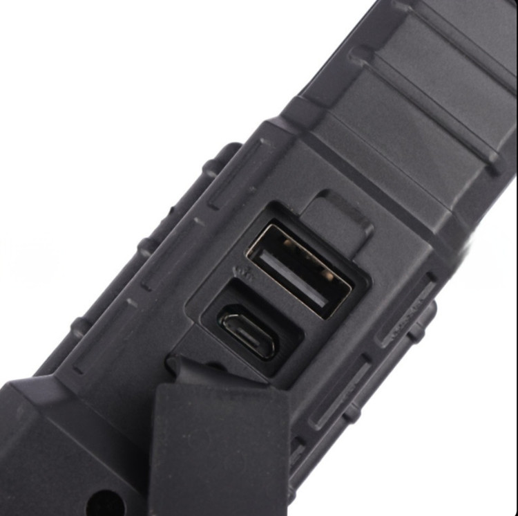 دارای درگاه USB قابل استفاه به عنوان پاور بانک، بدنه ساخته شده از پلاستیک سخت با قابلیت ضد آب