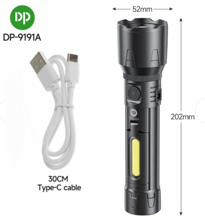 چراغ قوه جدید برند dp است که از خصوصیات بارز آن اضافه نمودن حالت زوم به چراغ قوه است، مدت ماندگاری شارژ چراغ قوه حدودا دو ساعت در حالت نور جلو است.