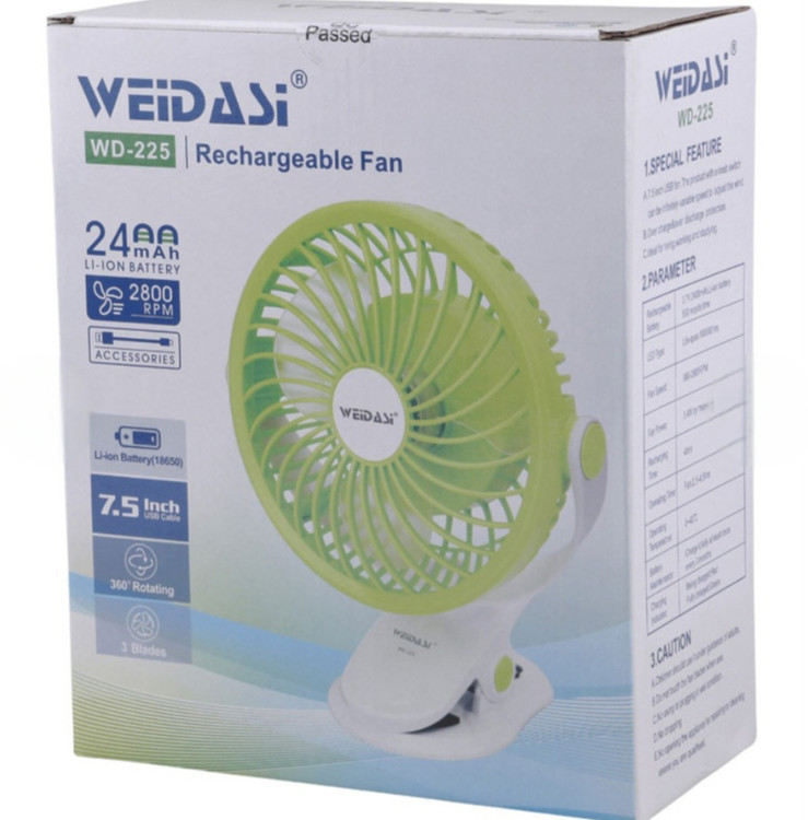 ساخته شده در ابعاد 7.5 اینچ، دارای سه عدد پره از جنس پلاستیک، قابلیت چرخش 360 درجه سری پنکه
