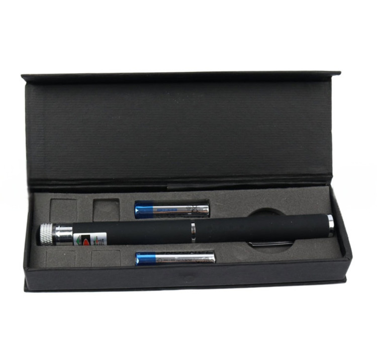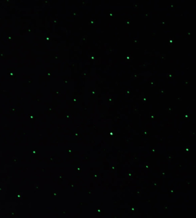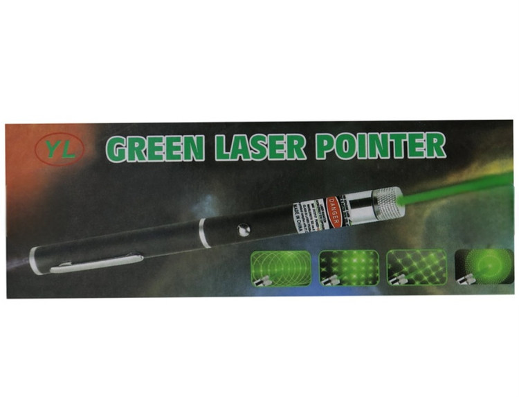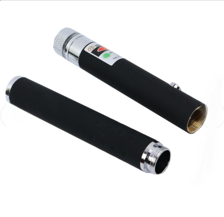 تامین انرژی توسط دو عدد باتری نیم قلمی لیزر پوینتر با نوردهی به رنگ سبز و قابلیت ایجاد اشکال نقطه ای متفاوت