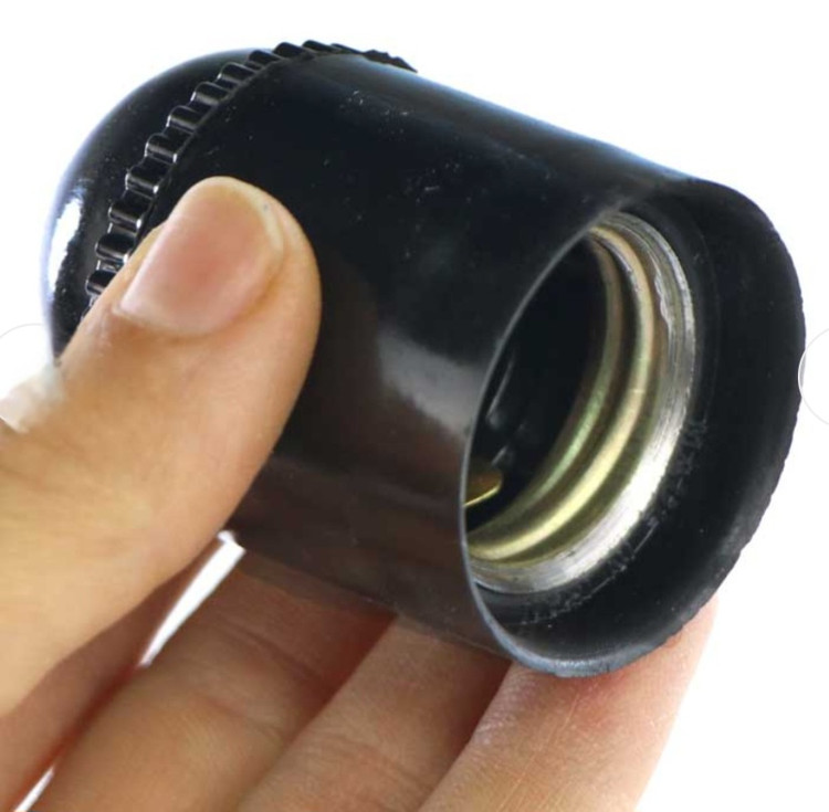 پایه E27 (مناسب لامپ های معمولی، کم مصرف، رشته ای و ال ای دی) بدنه ای از جنس باکالیت و مغزی برنجی