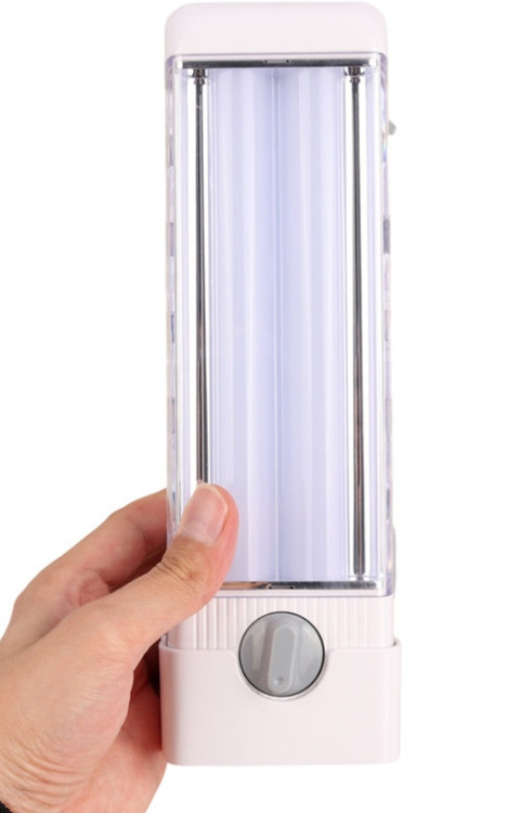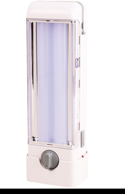 چراغ شارژی دارای دو لامپ ستونی است که با یک ولوم تعبیه شده در جلوی دستگاه کم و زیاد میشود.