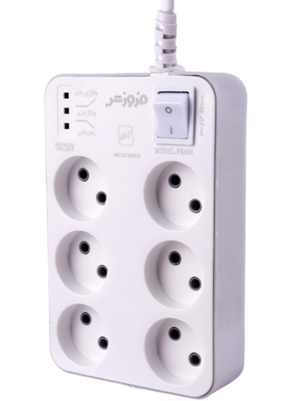 شدت جریان خروجی 10 آمپر و ولتاژ کاری 250 ولت، دارای 6 عدد پریز بدون ارت